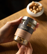 Ces noix de cajou grillées et salées se marient parfaitement avec l’arôme boisé et délicat de la truffe noire (Tuber melanosporum 1%), créant un équilibre subtil et aromatique. Leur texture croquante et leur goût savoureux en font un snacking idéal pour l’apéritif.