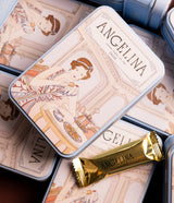 Classique de la maison Angelina, ces crêpes-dentelle bien beurrées, de fabrication française, sont enrobées d'une fine couche de chocolat noir pour encore plus de gourmandise. Présentées dans leur jolie boîte en fer blanc illustrée.