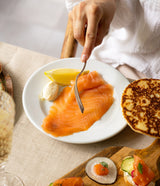 Accompagnez ce saumon fumé de blinis moelleux, et d’un soupçon de crème d’Isigny. Besoin d’inspiration ? Découvrez nos idées d'accompagnement dans cet article dédié pour délecter vos invités !
