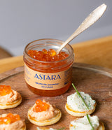 Déguster les œufs de saumon, aussi appelés caviar rouge, correspond à une longue tradition de fête, notamment en Russie ! Les œufs de saumon sauvage Keta (Alaska) sont gros et naturellement orangés. Une fois en bouche, ils éclatent et libèrent une sensation onctueuse et un goût iodé affirmé.
