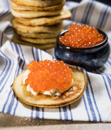 Déguster les œufs de saumon, aussi appelés caviar rouge, correspond à une longue tradition de fête, notamment en Russie ! Les œufs de saumon sauvage Keta (Alaska) sont gros et naturellement orangés. Une fois en bouche, ils éclatent et libèrent une sensation onctueuse et un goût iodé affirmé.