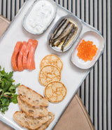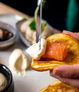 Petite crêpe épaisse d'origine russe, le blini est le meilleur allié des produits de la mer à l'apéritif grâce à son moelleux et sa douceur. Barquette de 16 blinis pour varier les plaisirs en une bouchée !