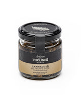 Ce carpaccio élégant est composé de truffes entières (Tuber aestivum) finement tranchées, conservées dans une huile de tournesol délicatement parfumée à la truffe.