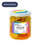 Légumes français*47% (chou-fleur* 20%, carottes* 13,5%, oignon*7,5%, courgette* 6%), eau, vinaigre d’alcool*, sucre*, sel de Camargue, curcuma*,antioxydant : acide ascorbique.